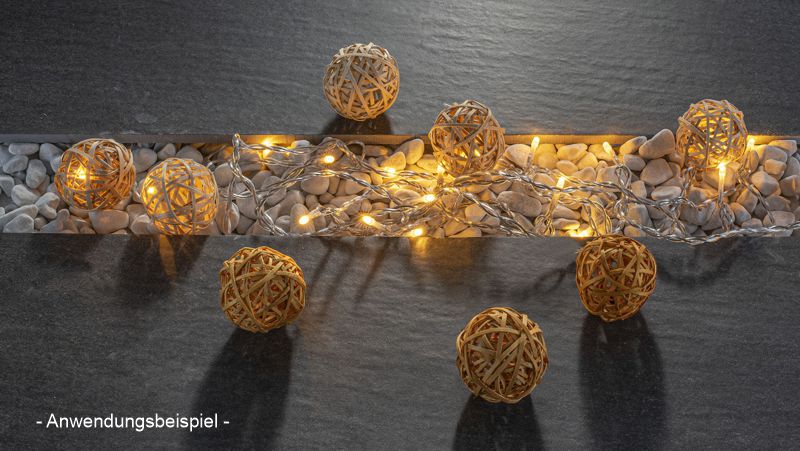 Die 20 warmweißen LEDs erzeugen ein gleichmäßiges, behagliches Licht und sind perfekt für eine wohnliche Raumgestaltung. Durch den geringen Energieverbrauch ist die Lichterkette effizient und langlebig.