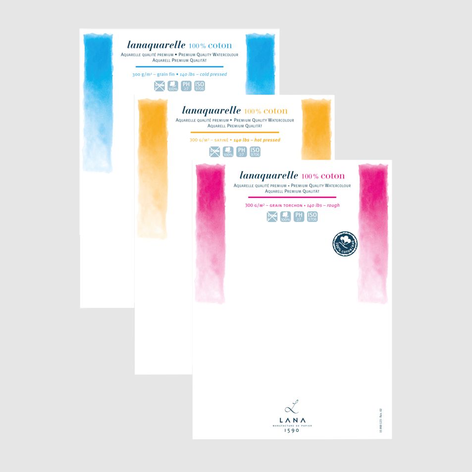 Das Lanaquarelle Aquarellpapier von Hahnemühle zählt zu den Premium-Papieren für anspruchsvolle Künstler. Gefertigt aus 100 % Baumwolle und traditionell auf dem Rundsieb hergestellt, überzeugt es durch eine außergewöhnliche Qualität und ein besonders angenehmes Malgefühl.